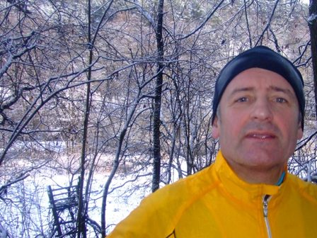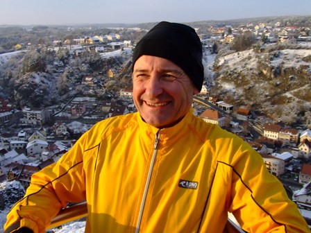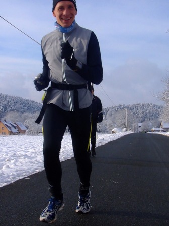 Laufphilosoph Bruder Olaf friert und wärmt sich in der Sonne,