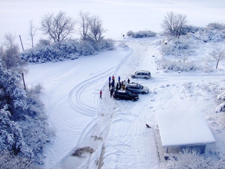 Viel Schnee, durch den wir mit etwas nassen Schuhen müssen |