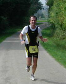 2. Biberttal-Marathon 23.09.2001 - Bericht von Erwin Es ist wie letztes Jahr hier: neblig, kühl, wolkenlos. Ich dehne mich in der warmen Halle direkt am Start, begrüße Freunde und die anderen vom "Team Bittel" (es sind mehr als ich dachte) und freue mich darüber. Ich laufe mich noch etwas ein. Uppps, der Startschuss kommt so plötzlich! Wir sind alle überrascht. Einige laufen schnell vorweg. Ich für mich versuche mich in meinen gelungenen Lauf vom Vorjahr einzufühlen und laufe genauso los, betont langsam. Natürlich ist es erhebend mit der "Nr. 1" auf der Brust zu laufen, und viele Leute grüßen mich und sprechen mich an. Aber heute ist heute. Bald schon bin ich alleine unterwegs in genau meinem Tempo. Ich muss viele der mittlerweile eingeholten Halbmarathonis förmlich aus dem Weg schubsen: "bitte rechts bleiben", und bald auch noch auf Entgegenkommende achten. Der schmale Radweg ist eng. Ich erfahre durch gut gemeinte Zurufe bald, dass nur noch einer, Robert vor mir ist und denke, es ist wirklich eng hier. Ich treffe Thomas bei km 11, der schon auf seinem Weg zurück ist und ganz konzentriert wirkt. Als ich dann die Wendemarke der Halbmarathonis passiere fühle ich mich frei, muss endlich nicht mehr Slalom laufen. Ich konzentriere mich nach innen und schaue den sich langsam auflösenden Nebelschwaden nach. Ich kenne den Weg gut und habe meinen Rhythmus schnell und fest gefunden. Es geht durch schattige Waldstücke leicht bergauf, alle paar Kilometer ein Tisch mit ein wenig zu kalten Getränken, etwas verloren am Wiesenrand und fünf fröhliche Gesichter dabei. Die Strecke ist gut eben, aber ich merke doch: es geht bergauf. Die km-Marker kommen und gehen, es ist ein Lauf, als würde ich alleine nur für mich laufen. Mir kommen viele gute Gedanken, ich sinniere ein bisschen. Gleich müsste mir mein Freund Norbert auf dem Führungsfahrrad entgegenkommen. Ha, da ist er. Er grüßt grinsend, gefolgt von Robert, der staunt: "Du schon hier!". Ich verstehe den Sinn seiner Worte nicht und laufe meinen Rhythmus weiter. Hin und wieder beobachte ich meinen Pulsmesser. Der Reihe nach kommen mir bald Wolfgang und die anderen entgegen: Stefan, Uwe, Joachim, Ernst, Dietmar und ein paar weitere bekannte Gesichter. Mich freut besonders die lockere und freundliche Atmosphäre unter den Läufern und den wenigen treuen, häufchenweise verteilten Zuschauern. Jetzt auf dem Weg zurück weht mir ein leichter Wind entgegen. Ich bleibe an jeder Trinkstation stehen für einen großen Schluck. Ich schwitze wenig und beschließe einen Baum zu gießen. Langsam werden die km-Schilder größer: 35, 36.37. Ich frage mich, ob ich Robert noch treffe? Mein Puls ist fantastisch konstant und niedrig, wie letztes Jahr. Ich freue mich. Und ich freue mich auf den Empfang im Ziel. Dort werde ich meiner Freundin in die Arme fallen, mich dehnen und strecken und dann Joachim entgegen gehen, um ihn ins Ziel zu begleiten, wie ausgemacht. Wenn ich noch fit bin... Und plötzlich ist der Lauf vorbei, ich laufe schon den fröhlich klatschenden Leuten im Zieleinlauf entgegen. Ich fühle mich ruhig und breite meine Flügel zur Landung aus. Leider hatte ich meine Uhr irgendwann in den ersten Kilometern aus Versehen gestoppt, so das ich unterwegs und auch im Ziel keine Zeit wusste. Trotzdem war ich am Ende genauso schnell wie letztes Jahr! Na, das ist eine Überraschung. Ich freue mich noch mal, denn der Lauf letztes Jahr war hier nicht nur einer meiner lockersten sondern auch flottesten Marathons. Ich falle meiner aufgeregt wartenden Freundin in die Arme, beglückwünsche dann Robert zu seinem Sieg und plötzlich ist auch schon Wolfgang da. In neuer Bestzeit. Er strahlt wie eine Sonne und scheint nicht mal außer Puste zu sein. Dann dehne ich mich und schnappe Norberts Rad um Joachim abzuholen. Ich sehe das als "team-bittel-mäßig" selbstverständlich an, ihn abzuholen wenn ich noch kann. So treffe ich ihn bei km38 an der letzten Verpflegungsstation, Stefan, Ernst und Uwe sind gerade vorbei und noch gut drauf. Joachim muss ab und an kämpfen. Keiner hat gesagt, dass ein Marathon leicht ist! Robert, den lockeren Sieger kenne ich schon länger. Heute hat er sich entschlossen auch im Team Bittel mitzumachen: "Was ist schon dieser Marathon im Vergleich zum Leben?" - Danke Robert, gut gesagt! Es war einer meiner schönsten Marathons, ruhig und leicht. Die Strecke ist sehr gutgängig, die zweite Hälfte geht psychologisch gut leicht bergab. Der Bibert-Tal-Marathon: klein aber fein, empfehlenswert für die, die nicht mit Tausenden laufen möchten. Erwin vom Team-Bittel. |