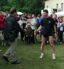 Erwin "schwebt" als Gesamtzweiter nach 42 km ins Ziel ein |