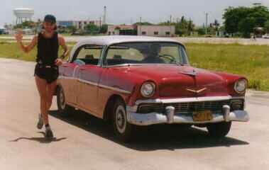 ist Cuba Ich komme nach langem Flug in Varadero an. Varadero, das heißt Hotels wie sie auch in Mallorca stehen. Mir ist flau im Bauch, ich mag keine solchen Orte und will weit weg von hier. Mein Rucksack ist klein und wiegt 4,5 kg, mein einziges Gepäck. Isomatte, Schlafsack, ein Ersatz-Shirt, Jeans, Badehose, kleine Kamera, kleines Handtuch. Meine Laufschuhe habe ich an. Minimalgepäck. Um so mehr Platz für Eindrücke! Ich nehme den Bus in die nächste Stadt. Es ist sehr früh am Morgen, ruhig, kühl. Leider wird bis zum Abend kein Zug fahren. Schon seit gestern warten hier Leute in der Halle. Ich glaube es nicht, aber so ist es. Das ist Cuba! Also schlafe ich eine Runde neben meinem Rucksack. Später komme ich auf einem Lastwagen mit in die Stadt und laufe mit großen Augen herum. Cuba, alles ist neu und unglaublich. So stelle ich mir die 50er Jahre vor. Es ist ein armes, streng kommunistisches Land. Viele Uniformierte in den Straßen, aber ich fühle mich nicht kontrolliert oder beobachtet. Die wenigen Läden sind leer. Ich kaufe am seit kurzem erlaubten privaten Markt ein. Es gibt leckere Bananen, Orangen, Papayas und lauter gutaussehende frische Sachen. Bald suche ich nur noch Schatten. Uhh ist das warm! Ich genieße die leichte Brise, die unter einer Brücke weht. Die Sonne brennt so stark, daß ich mich ins Wasser stelle und meine Füße kühle. Man kann an einer Straßenecke frisch gemachte Pommes in braunen Papiertütchen kaufen oder Mini-Pizzas. Es ist einfach zu heiß! Ich gehe zurück zum Bahnhof, trinke zwei süße Ananas-Zuckerrohr-Säfte für einen Peso auf dem weiten Weg. Der alte Mann kann auf 20 Pesos nicht herausgeben, der Schein (etwa zwei Mark) ist zu groß für ihn. Als ich vor Hitze zerfließe steige ich in eine dieser typischen Pferde-Kutschen ("cocheros") . "Cubanisch Reisen", wie im Film, den ich vor Monaten im alten Erlanger Kino gesehen habe. Typisch! Ich bin wieder am Bahnhof. Alle Züge sind ausgebucht! Wie? Und jetzt? "El último para Santiago?", wer ist er Letzte in der Warteschlange? Ich als in Devisen zahlender Tourist bekomme dann doch einen Platz im vollen ratternden langen Zug, 1000 km quer durch das Land. Heute fährt der alte Zug mit den offenen Fenstern und fast keinem Licht. Es gibt noch einen "neuen" Zug mit roten sauberen Sitzen, aber der ist mindestens auch schon aus den Fünfzigern. Ruhig wackelt mein Waggon. Ich hülle mich in meinen Schlafsack und so gehts 14 Stunden durch die Nacht. Etwas Lokomotivenrauch weht durch die immer offenen Fenster. Windig ist es hier drinnen und etwas kühl, vor allem wenn es regnet und auf mich herein tröpfelt. Dann erwache ich kauernd in meinem Sitz. Ich blinzle durch das Fenster. Santiago. Es ist mir mulmig zumute, was wird mich erwarten? Es muß später Morgen sein. Schon im Zug sprechen mich Mitreisende an ob ich eine Unterkunft bräuchte. Ich nehme ein Fahrrad-Taxi in den nahen Stadtteil "Sueno", den ich schon vom letzten Jahr gut kenne. Dort gibt es immer Zimmer zu mieten. Ich finde schnell etwas. Hey, nette und junge Leute! Ich bin sofort in die Familie aufgenommen, was Essen mit einschließt. Stolz zeigt man mir das kleine Baby-Mädchen von 2 Monaten, präsentiert mir die gerade erwachsene Cousine, die zu Besuch ist, und zeigt mir ein paar alte Fotos. Es ist viel Leben in den wenigen engen Räumen. Mein Zimmer ist grau und klein, die Dusche funktioniert selten, kein Fenster, ein Ventilator. Ich dusche und wasche Wäsche. Dann nimmt der leichte Nachmittag seinen Lauf. Ich trinke immer wieder gute Säfte. Dann ziehe ich neugierig durch die Häuser des Viertels hier. Die Sonne brät mich förmlich, da liege ich dann schnell wieder im Zimmer und lese. Oder ich lausche dem was da so ist. Über die Dächer dringt ein leises Lied, singt eine Mamá. Die Senora des Hauses kocht. Drinnen ist es nicht so heiß. Ein junger Cousin (oder ist es ein Nachbar?) guckt in mein Zimmer und redet auf mich ein. Ich verstehe nicht richtig was er will. Aber er ist nett. Ich esse etwas Obst. Das Laufen (1)Erst in den letzten beiden Stunden des Tages gehe ich Joggen: anfangs durch die Straßen des Wohngebietes ohne Autos, auf denen immer Kinder mit irgendeinem werfbaren Etwas Baseball spielen. Dann ein paar Hügel und ich verlasse trabend in der gerade noch erträglichen Hitze des zu Ende gehenden Tages Santiago. Ich bin auf der einzigen Straße gen Osten, meinen Wassergürtel um die Hüfte. Viele Straßen auf denen man laufen könnte gibt es nicht, eben die Verbindungsstraßen zwischen den Orten. Ich habe versucht im Gelände zu laufen, aber Feldwege sind selten, kurz, und enden bald im Dschungel oder es wird sumpfig. Auf der Asphaltstraße ist nicht zuviel Verkehr. Nahezu jedes Auto das mich langsam überholt ist ein restauriertes Kunstwerk aus den 50er Jahren. Längst sind die farbenschönen Buicks und Chevrolets Cubas lebende Legende. Gute 35 Grad schätze ich. Ich laufe durch die grüne Weite der erst halbhohen Zuckerrohrfelder, immer am Rande einer Bergkette entlang. So erlebe ich Cuba. Pferdewägen, gepflegte alte Fahrräder und viele Fußgänger zwischen den Orten. Es ist ein sehr beruhigendes Gefühl hier zu laufen. Ich schwebe und bin dankbar so ein schönes Land entdecken zu dürfen. Ein fast steter leichter Wind läßt die Temperatur erträglich erscheinen. Ich laufe und laufe, doch ich muß umdrehen, damit ich vor dem Dunkel zurück bin. Autos oder Lastwägen trifft man dann zwar kaum mehr, aber nachts fahren die Fahrräder ohne Licht! Und alle Leute grüßen und staunen, weil hier sonst niemand läuft. Sie gucken mir lange hinterher. Ich bin schon an anderen ungewöhnlichen Orten gelaufen, aber hier fühle ich mich schnell dazugehörig. Es geht gut, locker. Ein Radfahrer begleitet mich ein Stück. Eine junge kaffeebraune Frau pfeift mir im Vorbeilaufen von der anderen Straßenseite zu. Irgendwie ungewohnt die Geste, aber nett! Der Abendhimmel zeigt heute dunkle lila Wolken vor orangerotem Sonnenuntergang. Kein Wun