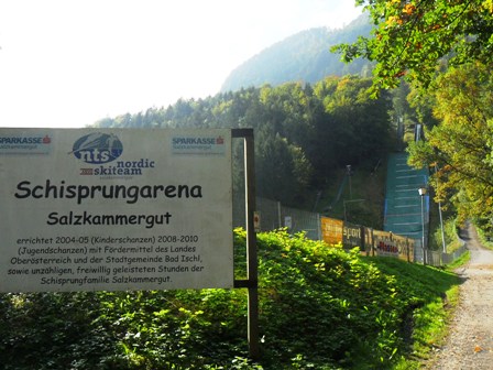 Nach einer kleinen + einer großen Schlaufe durch Bad Ischl machen wir uns auf den Weg, vorbei an der Ski-Schanze...