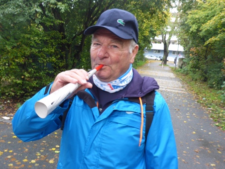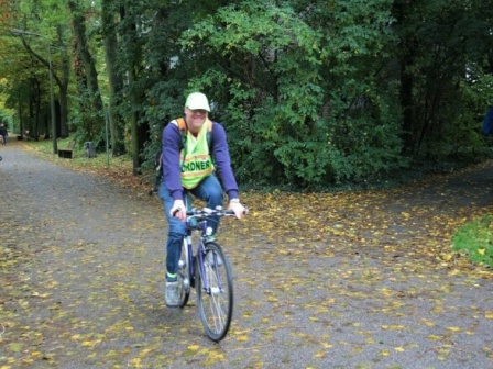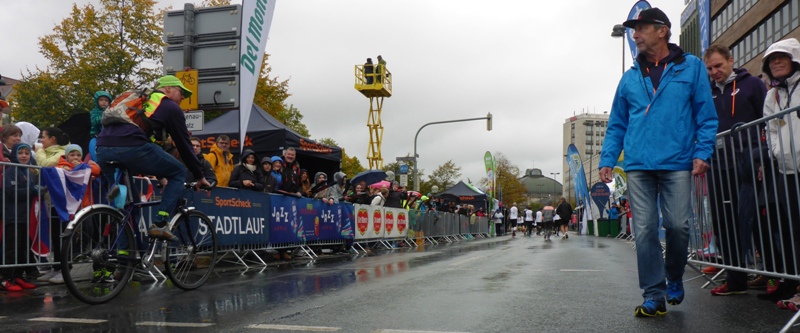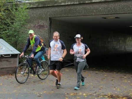 Der Besenradler Jürgen Fahrt + der Happy-End-Läufer sind positioniert
