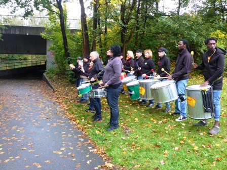 Blick von der Brücke auf die nächste Samba-Einheit (mit Besen-Jürgen)