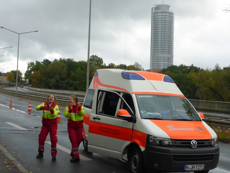 Km4: Fetzen-Applaus von den Johanniterinnen auf der Brücke