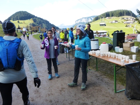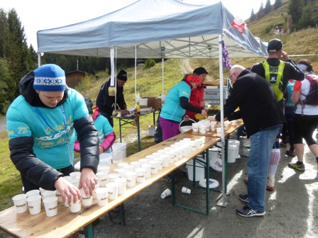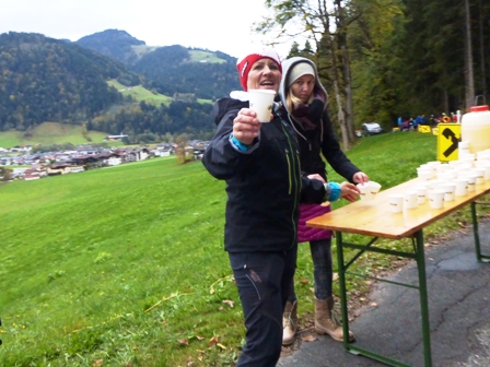 Im Ziel gibt es für uns heißen Tee und warme Suppe, was wir sehr gut