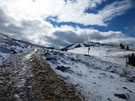 Nacht 7 cm geschneit. Und in der Tat, es klappt, etwas Schneematsch,