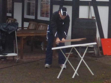 Improvisierter Startschuss mit dem Brett auf den Tisch