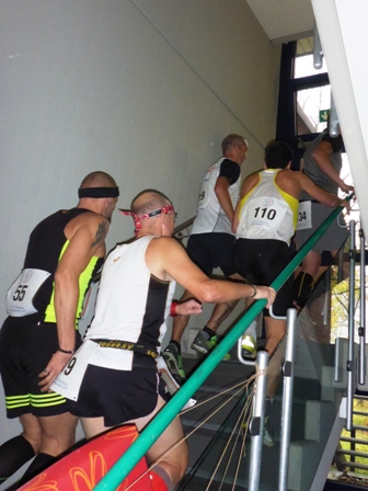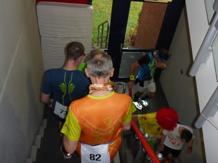 Verpflegungsstelle und bald wieder die Treppe hoch (erneut Stau und Überholverbot). Nach