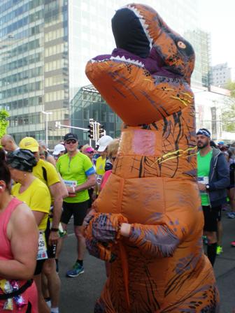 schüttle dem Maskottchen des Marathons die Hand und...