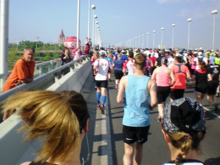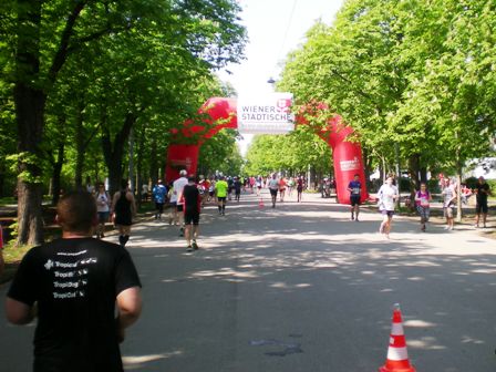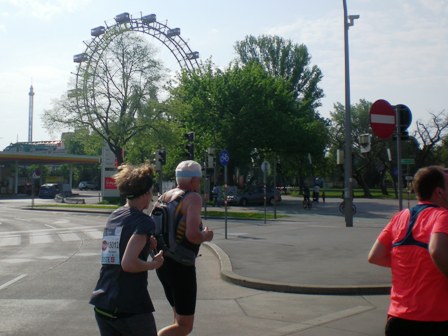Um den Prater-Stern herum – Startblock 3 rechts, und wir im Startblock 4 links herum. Erster Blick aufs Riesenrad. Bei KM 5, an der 1. Verpflegungsstation nimmt das Unheil seinen Lauf: Hier treffen die beiden Startblöcke aufeinander, und es ist den...