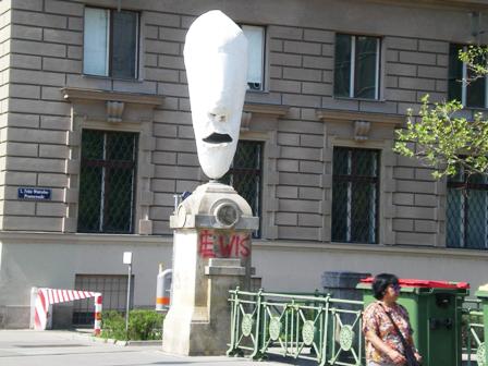 Einer der 4 Lemurenköpfe von Franz West auf der Stubenbrücke