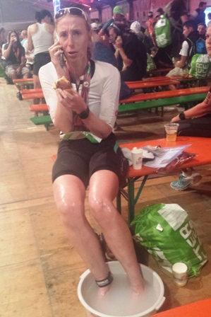 Füße kühlen, ja es war heiß. Die Fäns anrufen... |