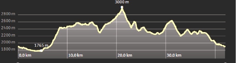 Start auf 2.000m Höhe. Die ersten 6km sind flach...