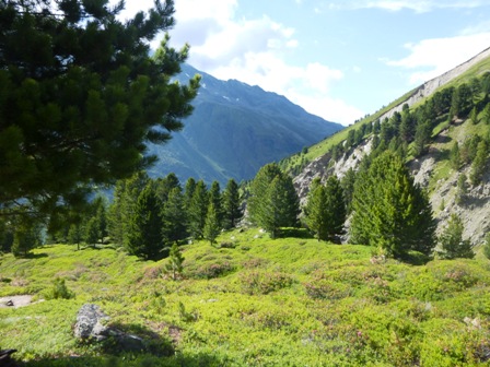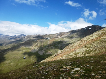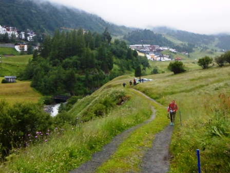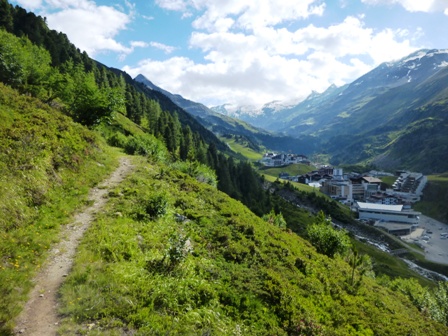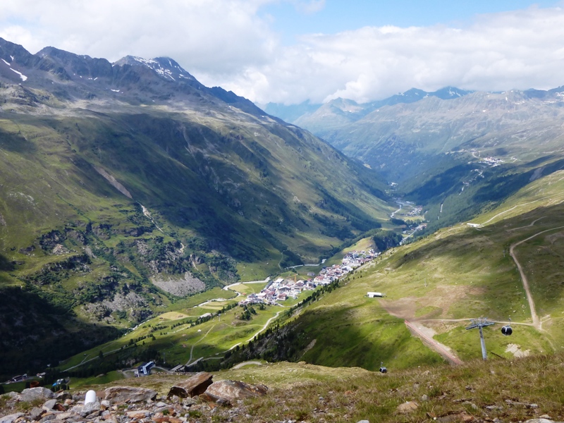 Wir laufen die Piste runter mit Blick auf Obergurgel