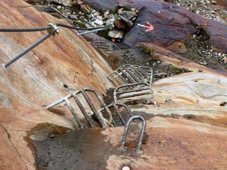 Jetzt kommt das steilste Stück, zum Glück mit Seil