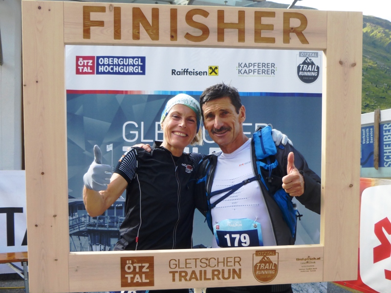 Die Wege sind perfekt markiert, das muss ich betonen. Sonst hätten wir uns öfters verlaufen. Alles ist super organisiert vom tollen Team des Tourismusverbands Ötztal. Viele fröhliche Helfer einschließlich der Bergwacht, und am Ende gab es einen tollen Zielempfang! Die Pasta danach war lecker und es gab sehr spezielle Bergpreise, v.a. die Sonnebrille. Sicher für nächstes Jahr, bei strahlendem Himmel.