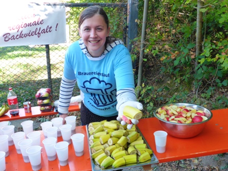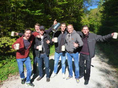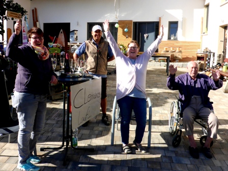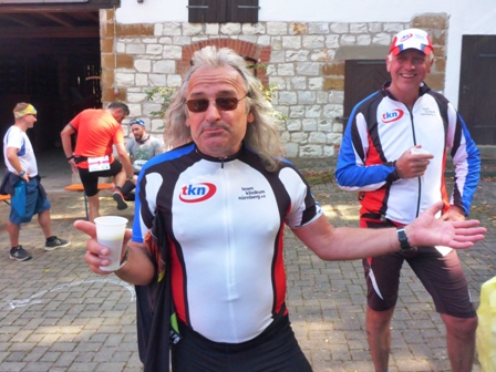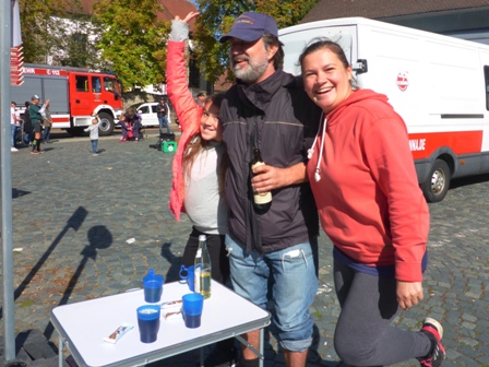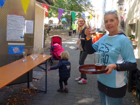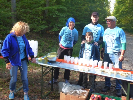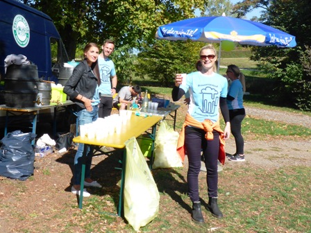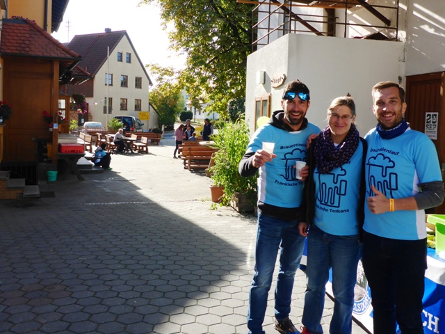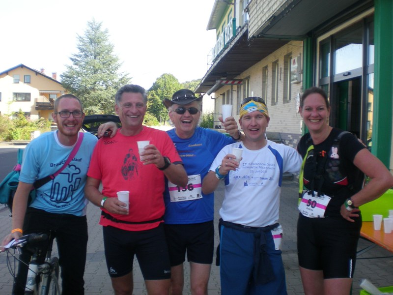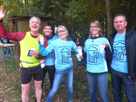 Km34: Andrea und ihre 2 Begleiter stoßen mit mir an (Brauerein