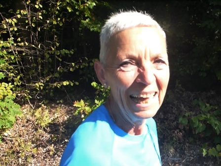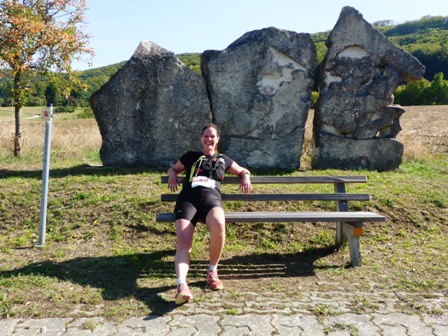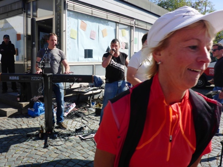 fröhlich durch die Gegend, bis ich den vorletzten Läufer einhole, Ruth.