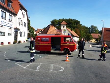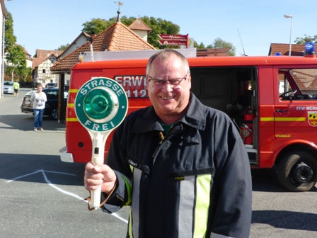 Die Feuerwehr hat den Verkehr fest im Griff und gibt mir... |