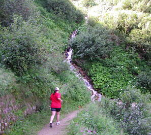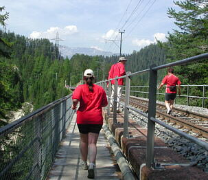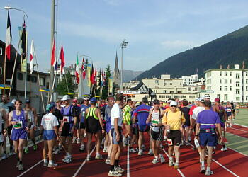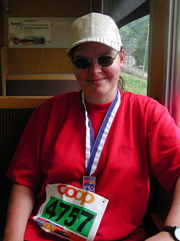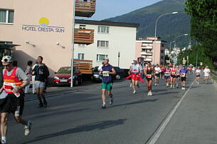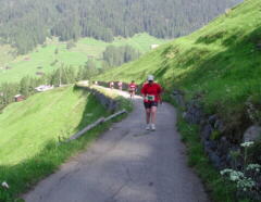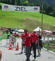 Mein Bericht vom "kleinen" Swiss Alpine K30 am 28.7.2001 in DavosEin Ehepaar läuft gemeinsam durchs Ziel |