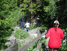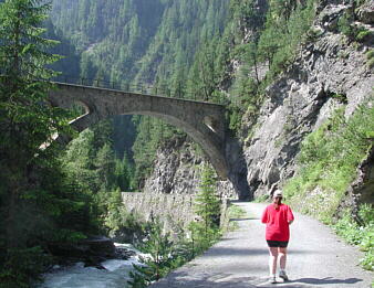 zuerst geht es nun auf einer Straße und einem Fahrweg steil bergab, wo wir schnell