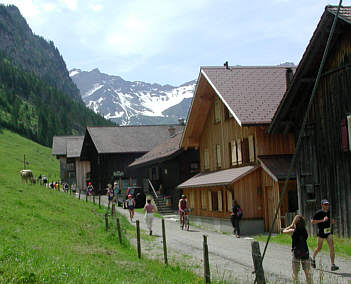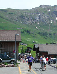Aber immer wieder werden wir bei dem Aufstieg von Zuschauern auf der Strecke freundlich mit Schwyzerdütsch angefeuert. Manchmal tue ich mir nur selbst als Süddeutscher hart das ganze auch zu verstehen. Was mögen davon erst die Läufer aus dem Norddeutschen Raum nur verstehen?