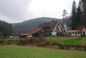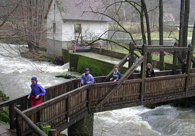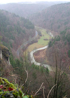 flußabwärts. Hinter der romantischen Kuchenmühle werden die Hänge