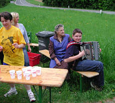 Im Buschenschank. Mein Vater links ist wegen der