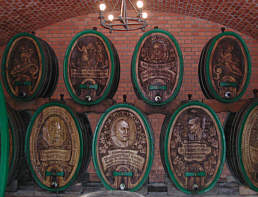 Hübsch geschnitzte Weinfässer |