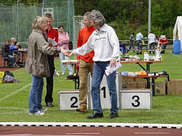 Marathon am MikrofonUnd schon höre ich Birgit wieder, besser gesagt ihre anfeuernde Stimme, die vom Sportplatz herüber tönt. Ich lasse meinen Lauf ausrollen und bremse erst im Ziel. Schön leicht angekommen, gelandet! - Birgit begrüßt mich, wie jeden Läufer einzeln mit Namen, weiß zu vielen Ankommenden etwas zu sagen, kennt irgendwie fast jeden persönlich, ist enorm engagiert bei der Sache und einfach nicht zu bremsen. So etwas gefällt den Marathonis und den Zuschauern. Sie gibt alles, ihr persönlicher Marathon am Mikrofon. Im fünften Jahr dieses Events. Wie es war, fragt sie mich? „Einfach schön“ antworte ich ins Mikrofon. Ja, wirklich. Und bei 18 Grad kann man auch eine Weile stehen bleiben, Melonen essen, Malzbier trinken, Brot essen, Cola oder Iso trinken. Ich laufe mich 2 Sportplatzrunden aus, dehne und als die Ankommenden zahlreicher werden begleite ich den einen oder anderen auf seinen letzten Metern ins Ziel. Auch Liane, die 1. Frau und deutsche Bergmeisterin mit der ich mich später ein Weilchen unterhalte. Bald schon kommt die junge Tschechin, wird von Mann und Töchterchen empfangen, Elke von ihrem Freund. Dann kommt Klaus, den ich begrüße, auch Roland, und mein rumänischer Freund immer noch mit Ohrstöpseln. Immer mehr Läufer laufen ein. Es ist eine wunderbare Stimmung am Platz. Ich sehe zu und sammle ein paar Stimmen: bergab wäre anstrengend, der unebene Weg manchmal, die Schotterstücke, die Treppenstufen. Aber allen steht Freude im Gesicht. |