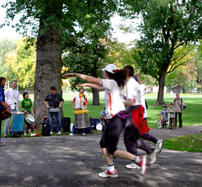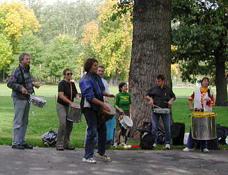 Durch die Trommler im Hintergrund kommen wir in Stimmung!