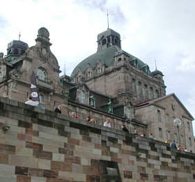 ![]() Da oben ist schon das Opernhaus und auch das Ziel. Aber wir dürfen erst noch ein paar Hundert Meter durch den Stadtgraben traben. |