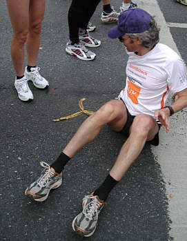 Auch die Halbmarathonläufer dehnen sich erst einmal
