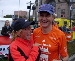 Manuela ist nach 21 flotten Kilometern und einem heftigen Schlusssprint etwas erledigt, aber auch sichtlich  glücklich