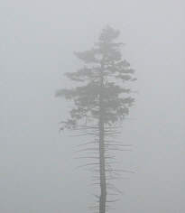Der Nebel hüllt alles in Schweigen ein. Kein Wehlaut dringt über die Wipfeln hinaus. |