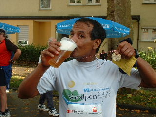Bier! 1.500 vornehmlich Franken erwartete erst im Ziel etwas Sonne. |
