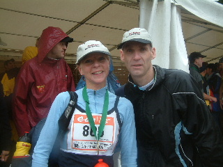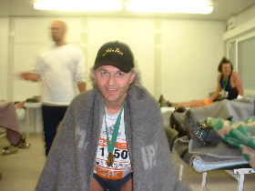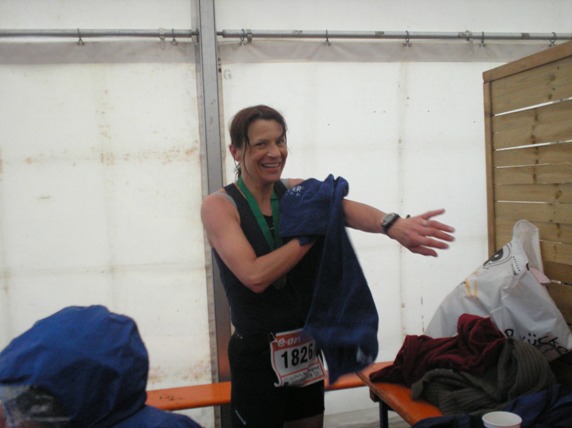 erfragt bei den Urkunden Ihre Zielzeit und... „Erwin Bittel bitte zum Med Point“, sagt die Sprecherin. Da saß sie schon 15 min eingehüllt in