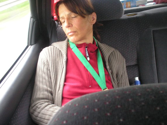 Autobahn unterwegs nach Hause. Anne und Hilmar sitzen hinten.