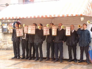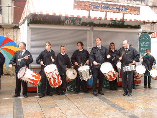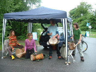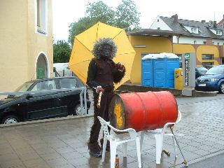 klatschen und rufen Leute zu uns, Kochtöpfe klappern und Rasseln.