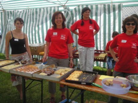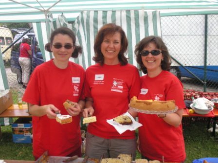 @Susanne: Und jetzt aber, ran ans Kuchenbuffet. Mhm, lecker. Ordentlich gestärkt gehen wir zum Ziel um den Finishern zuzujubeln. Einige sind sichtlich erschöpft und durch die Hitze mitgenommen.