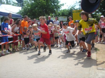Kinder dran. Um 13:30 h ist der Start zum Kinder-um-den-Weiher-Lauf. Die Kleinen sind schon völlig fertig, aufgeregt und finden sich langsam am Start ein. Ich postiere mich so, dass ich Fotos schießen kann und da wird auch schon heruntergezählt. Wie bei den Großen 10..9..8..7..6..5..4..3..2..1.. |