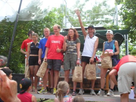 nehmen sie ihre Preise entgegen. Später sind die Marathon-Sieger dran. Auch