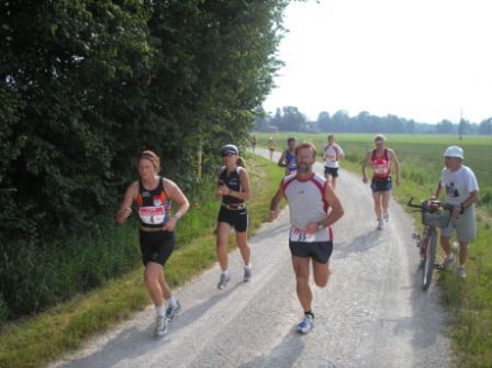 @Erwin: Ich zähle entgegenkommende Autos, km-Schilder , und weil das nicht viele sind, Straßenpfosten. Ich blicke durch meine Sonnenbrille, trabe so vor mich hin und trinke nen Becher wo es ihn gibt, einen zweiten oder einen Schwamm über den Kopf. Als es in den Wald geht finde ich meine „große Kugel“ wieder, so eine Art imaginäre Seifenblase, in die ich laufe, in der es absolut still ist, bunt schillert, ich mich zu den Sternen treiben lasse. Die habe ich hier schon einige Male gefunden (Spiritual Running). Für den Moment des Wendepunktes verlasse ich meine Taucherglocke. Meine Vordergruppe ist irritiert: welche ist nun die Wendemarke? Es gibt drei. Wir werden zur letzten geschickt, 200m weiter. Puh, pure Sonne, es ist schon sehr warm! Und drückend schwül obendrein. Na, das wird was geben.