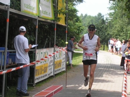 alleine, der führende Halbmarathoni überholt mich mit langen Schritten kurz vor dem Zielbereich,