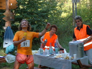zwinkern uns zu. Kurz danach an der Verpflegungsstelle (nur Wasser)