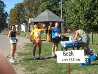 jetzt Stefan zu Andrea, Olaf und mir. Wir werden bis nach km40 zusammen bleiben: Funny Olaf, Andrea, Erkan