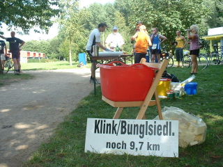 Wie ab jetzt alle 10km gibt es Wasser, Tee, Cola, Apfelschorle,