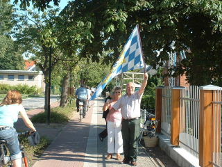 Überraschung: die Heimatfahne (und ein Glas Sekt) |