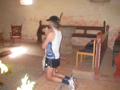 Und wir gehen in eine kleine offene Backsteinkirche am Straßenrand, um uns